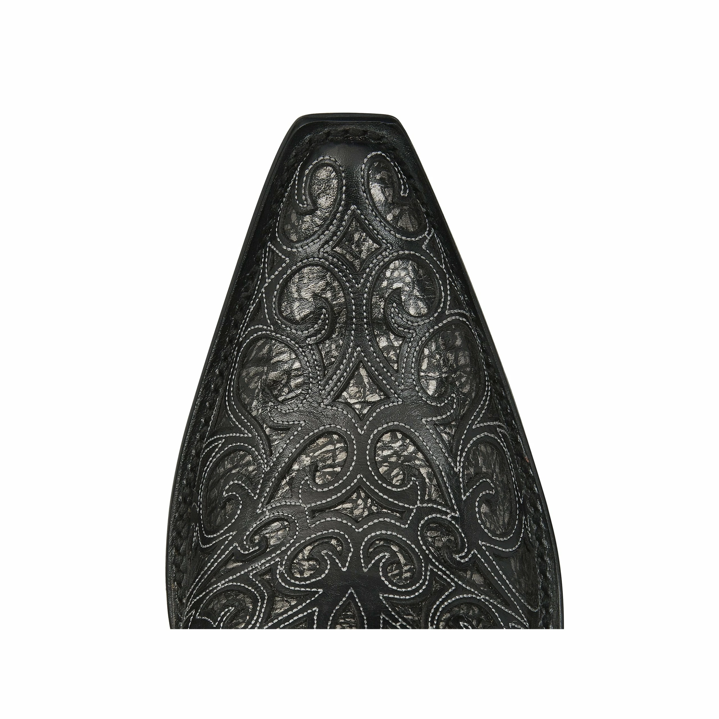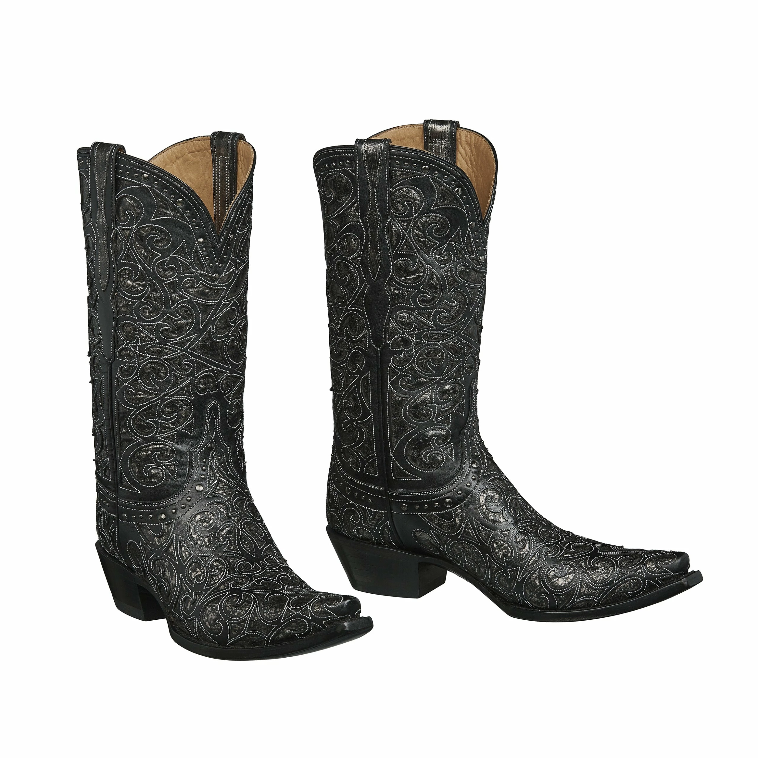 Sierra is a traditional Western boot with elaborate spirals laser cut onto the quarter and vamp. A thoughtfully brass-studded crown and collar add an element of sparkle to the cowgirls repertoire.