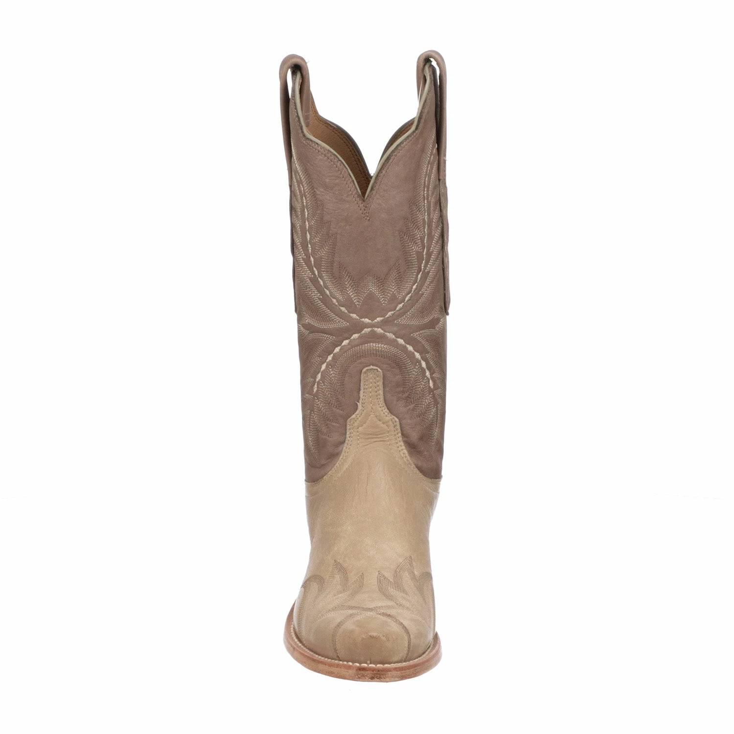 In contrasting shades of goat leather, two-tone Tilly makes a subtle statement. Detailed stitching on the quarters and vamp is equal parts subdued and striking. Elongated pull straps have a diamond stitch accent. A full welt binds the leather outsole and comfortable insole. Tilly is a little bit sassy and a whole lot of Western chic. Handmade in Texas.